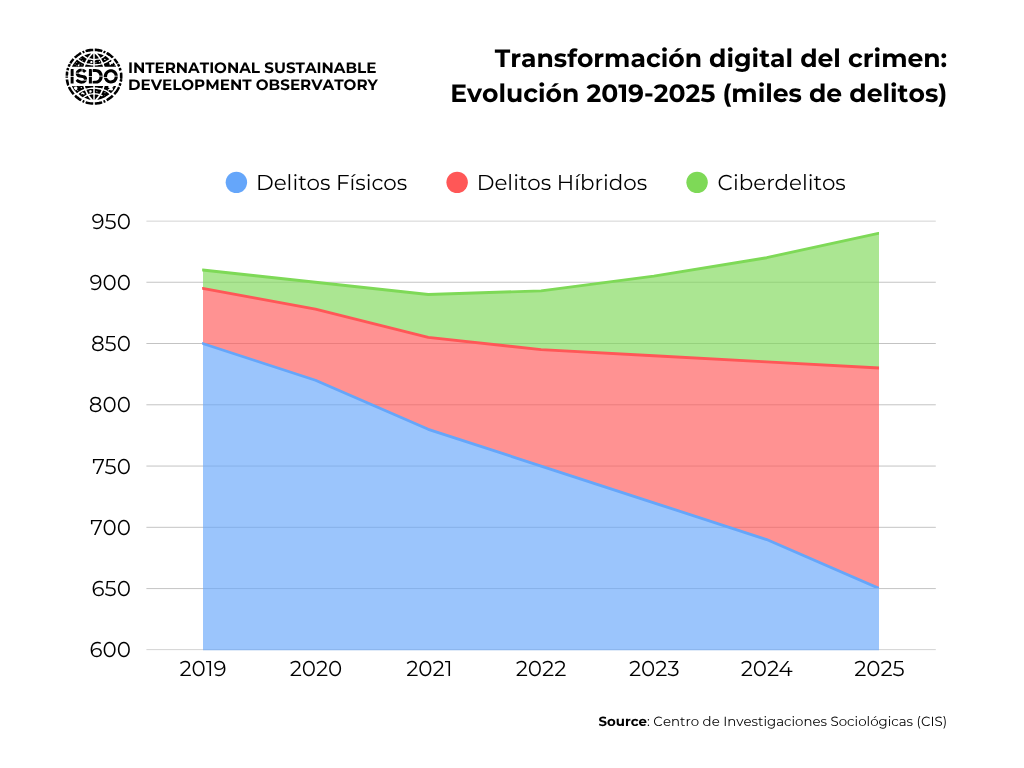 Finalmente, cabe subrayar el grave aumento de la cibercriminalidad, un fenómeno en expansión y con especial complejidad investigadora debido a la transnacionalidad de sus autores y a la dificultad de trazabilidad en los entornos digitales.